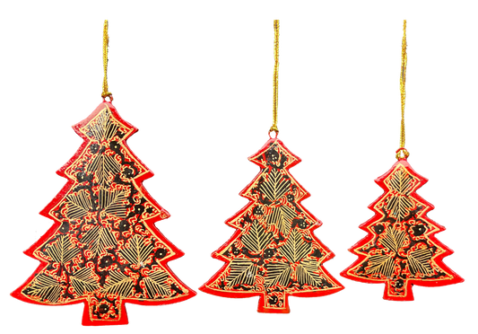Set of 3 Wooden Hanging Trees | 3x2 Inch | Christmas Decor