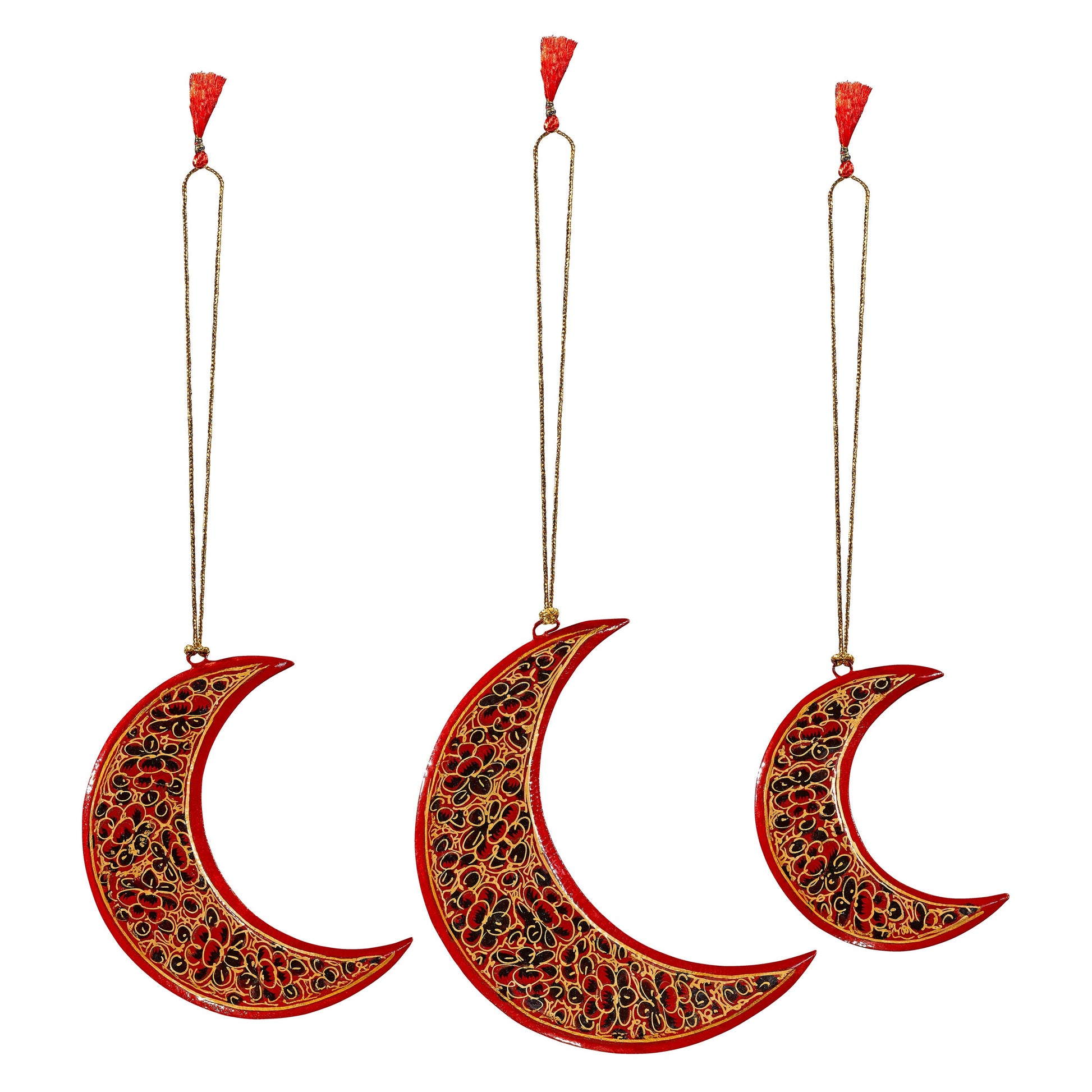 Assorted Crescent Moon (Wood) Christmas Ornaments- Set of 3