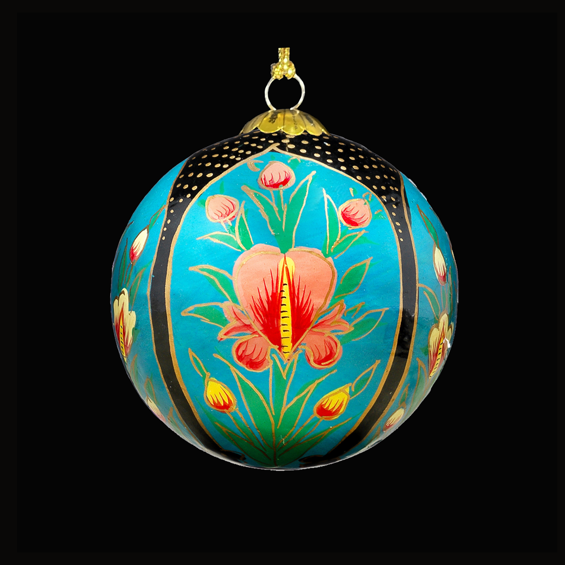 This handmade, hand-painted Christmas bauble is a beautiful and unique addition to any holiday decor. The bauble features pink tulip flowers on a temple design set against a sky-blue background. The intricate and delicate details of the temple and flowers are expertly painted by hand, giving the bauble a one-of-a-kind charm. The soft colors of the pink tulips and sky-blue background create a peaceful and serene atmosphere, making it a perfect addition to any holiday tree or display. The bauble is made of high-quality materials and is built to last, so you can enjoy it for many holiday seasons to come. Whether you're looking for a special gift for a loved one or simply want to treat yourself, this handmade, hand-painted bauble is sure to bring joy and beauty to any home.
