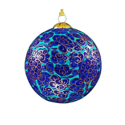 Enchanted exhibits the traditional Kashmiri Hazarra (a thousand flowers) design, handpainted in gold, the baubles in this collection will enhance the magic in your home.
